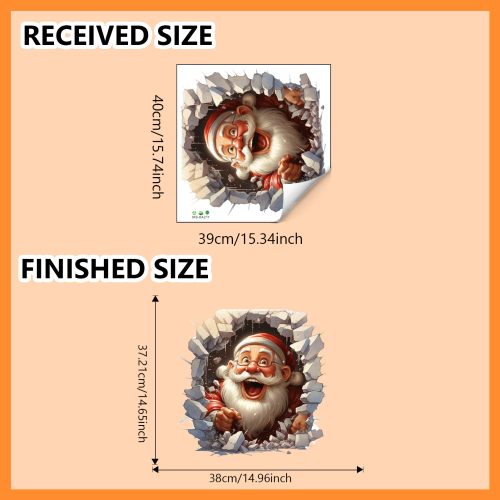 This is not just a flat sticker; it is an eye catching piece of art. The clever design creates a fun 3D illusion of Santa peeking right into your room.
